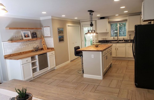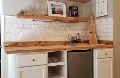 Guests are encouraged to host their own happy hour by taking advantage of the spacious kitchen's lovely bar area. Whether it be to warm up, cool down, relax and unwind or prepare for a night on the town, we hope our guests won't hesitate to whip up and enjoy their favorite cocktails among friends and family.