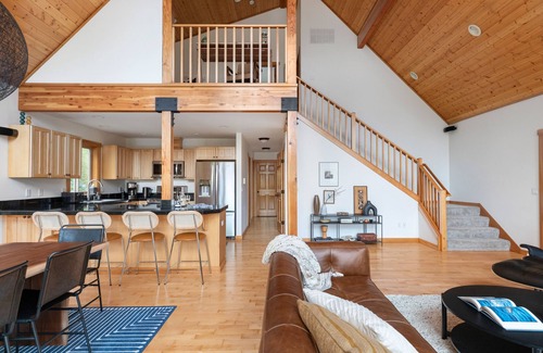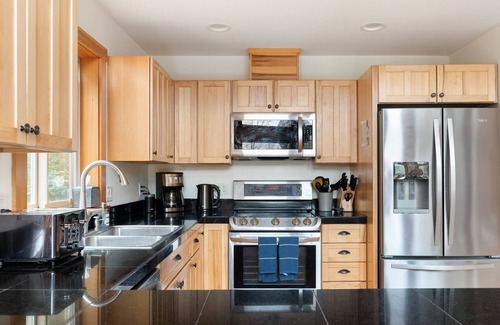We love to cook, and hey- food brings people together! With two full kitchens, you'll be set to cook up a storm, host your own iron chef party, or have plenty of dishware (and dishwashers) to enjoy takeout meals from the local restaurants. We usually like to cook in the upstairs kitchen, and have drinks and snacks spread out in the downstairs kitchen, but you can create your own culinary journey as you see fit! The downstairs kitchen also has cocktail mixing supplies for getting to where you're going. There's a propane grill on the large deck as well, for those who love to put meat (or veg) to heat.