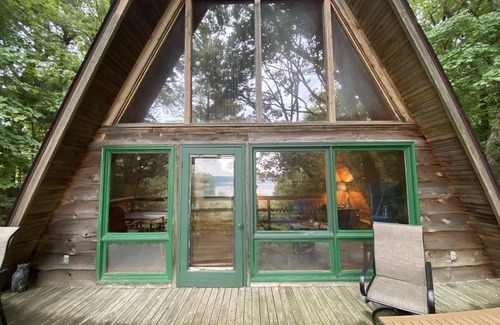 A-frame cabin nestled in forest, stunning lake view, perfect serenity. | House in Allegan