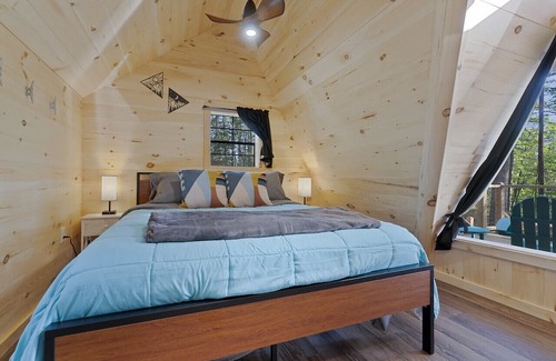 Secluded A-frame Cabin Surrounded by Trees, Close to Attractions and Ponds! Our cozy retreat comes with linens, towels, and a fully-equipped kitchen for your culinary exploits. Just bring groceries and your sense of adventure.