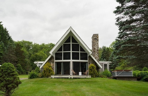A-Frame Getaway with Pool is located in Dover Plains. A-Frame Getaway with Pool provides accommodation, featuring Air Conditioner, Security/Safety, Bedding/Linens, among other amenities. This Cabin features Air Conditioner, Security/Safety, Bedding/Linens, to make your stay a comfortable one.