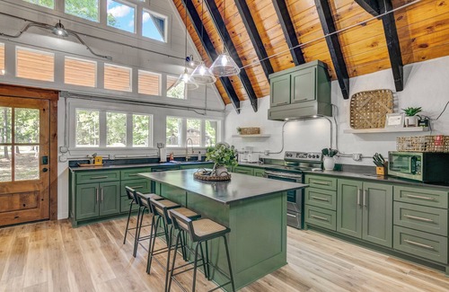 Come experience the natural beauty of this thoughtfully remodeled A-frame, Featuring a unique open concept with space for your entire group to be comfortable on lake time. It's located less then 5 mins away from everything Lake Sam Rayburn and east Texas have to offer: