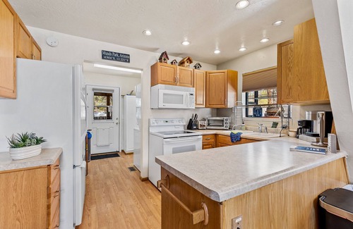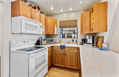 - A refrigerator, freezer, oven, toaster oven, and a Keurig and Mr. Coffee machine (starter k-cups provided).