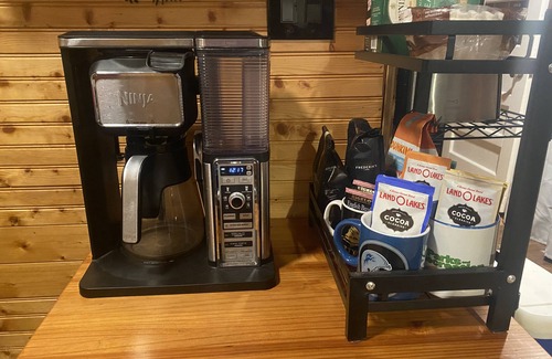 This cabin has a first floor bedroom with a queen bed and dresser for you to use, a loft that has 2 beds and storage for your belongings, both areas have plenty of space for a blowup mattress or cot for extra guests. Also, a newly built T.V. wall in the cozy living room area for chilling out.