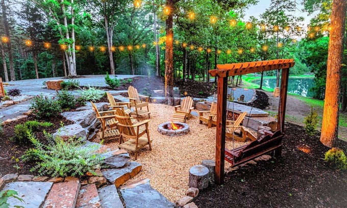 Discover this charming A-Frame Retreat that's nestled on 18 serene acres. Wake up to your morning coffee on the spacious deck, surrounded by nature. Enjoy the natural spring water catch and release fishing pond and beautifully landscaped surroundings. Cozy up on the swing, listening to the crackling fire around the fire pit. Fall in love with this newly renovated cabin—it’s the perfect family getaway. This cozy cabin comfortably accommodates up to 10 guests and 2 pets.