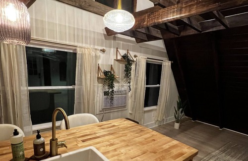 Beautiful restored A frame home located one mile from Vilano beach and less than a mile to the heart of downtown St Augustine. This home provides everything you need - a kitchenette with bar, living room, bathroom with walk in shower, lofted king bed and very large private deck.
