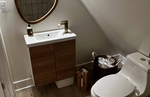 This home is uniquely designed and only suggested for those freely able to move through narrow spaces and able to climb stairs. The bed is upstairs in a loft and youll need to be able to lift the stairs down, climb up stairs and crawl into bed. The stairs leading to the unit are circular and narrow.