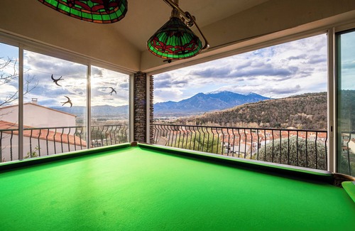 Nestled in Catllar, this 6-bedroom, 3.5-bathroom villa brings it all within your reach. Fans of nature and the outdoors will love being within a 5-minute walk of Regional Park of the Catalan Pyrenees and 20 minutes by car from Orgues d'Ille-sur-Têt. Let your feet make short work of the 6-minute walk to Office de tourisme Conflent Canigo Molitg les Bains or easily tackle the quick 7-minute drive to Prades Square.