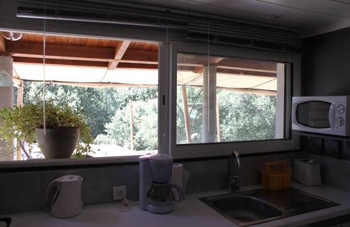 Apartment at the bottom of the villa, completely independent with private access, on the edge of a magnificent oak grove, 'A Franciscola', on the road to Cargèse in the direction of the splendid Calanches de Piana (classified as World Heritage by UNESCO), is at the crossroads of 2 gulfs: Ajaccio and Lava.