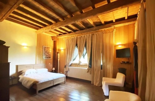 a historic residence of the Somascan Friars which in 2015 was transformed into a luxurious home of 800 square meters. The annex that stands next to the monastery houses a large 200 m2 living room with a central fireplace, a sofa, a billiard table and a living area. The living room has a long table, a counter and a kitchen for the exclusive use of guests; the whole area is very large and can comfortably accommodate groups of friends, large families and even couples. The wellness area extending from the main room includes an indoor pool, hot tub, sauna and gym.A part of the large hall at the entrance houses a full kitchen overlooked by a wooden bar counter. Beside the kitchen there is a table for 10 people with chairs.Outside the house there is a garden at the complete disposal of guests: the area in front of the house is equipped with deck chairs and umbrellas ideal for sunbathing. An area has been designated as a vegetable garden where guests can pick seasonal fruit and vegetables.