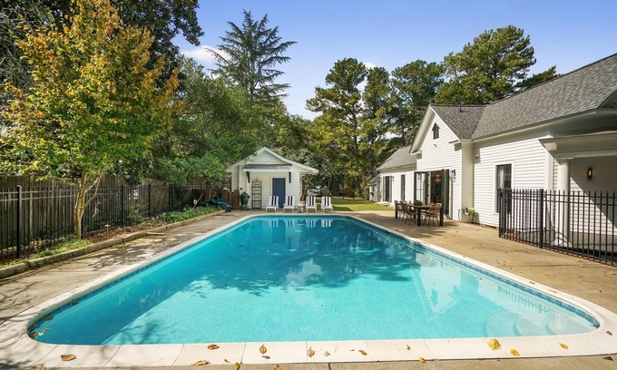 Just 30 minutes from downtown Atlanta, nestled in the heart of Stone Mountain, GA, this 5 bedroom, 5 bathroom historical home invites its guests for a relaxing get-away. Built in the 1890's (and fully renovated in 2020!), this home houses beautiful antiques and boasts 4 large bedrooms, with high ceilings, gorgeous furniture and all the comforts of home. Three of the bedrooms are complete with King or Queen sized-beds and attached full bathrooms, while the 4th bedroom holds bunk beds (with 6 twin beds) and a shared bathroom - perfect for kids of all ages. The home sits on half a town block, and thus has lots of outdoor space to enjoy. Note Every Friday night go enjoy "tunes on the tracks" Local concert set up a block from the house on the main street. With everything from a large gunite pool, fire pit and ping pong table to a lush fig tree (if they are ripe, please enjoy!), large wrap around porch (with views of Stone Mountain) and some of the oldest, largest Magnolia trees in the state of Georgia, the home has much to enjoy for all. It is a 1 block walk from the town of Stone Mountain, which is home to several beer and wine bars, coffee shops and quaint restaurants - as well as antique stores galore. Stone Mountain Park is less than 1 mile away (and walkable via a gorgeous walking path, just 2 blocks from the house). The park itself boasts the walk-up trail to the top of the mountain, miles of bike paths, canoeing, paddle-boarding and a beautiful 3-hole golf course.