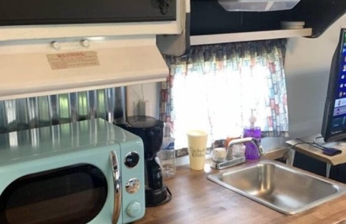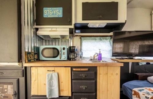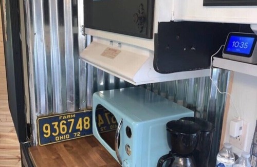 Nestled in the BEAUTIFUL Hocking Hills area, off the beaten path sits this cozy & cute, 2022 updated FARMHOUSE & RETRO inspired, BIGFOOT themed camper! A/C, WIFI, fridge, microwave, griddle, grill & fire pit. HD TV & Roku. Indoor shower & tub. Real hot water. Full size COMFY 8" memory foam mattress. 1 fold down twin bed. Coffee, multi spices & more. COME ENJOY HOCKING HILLS !!!