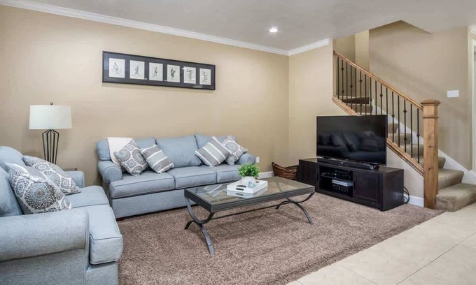 In the main level living area you can kick back and enjoy a 70” Smart TV, equipped with all of your favorite streaming needs of Netflix, Hulu, Amazon Prime video and so much more.