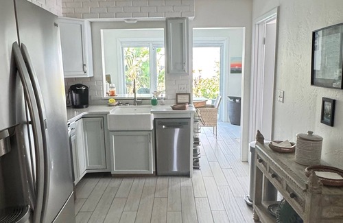 The minute you walk in the door you will feel the peace and tranquility this house has to offer. Completely renovated in 2022, our Boho/modern beachside house with Bali inspired garden and small private plunge pool create a tropical paradise. Located on a quiet street, one block off the beach, with a public access just steps away. Snow Birds welcome. Monthly rentals only. (Jan.1-April -May