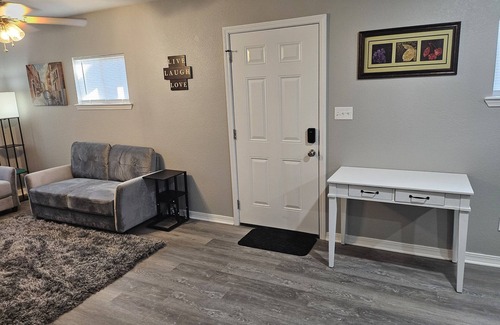 This is brand new construction finished 1-10-2024 everything is clean and cozy. This unit has 2 flat screen tvs .55 inch in the living room with surround sound and Bluetooth audio for music and electric fire place, And a 42 inch in the bedroom with surround sound and Bluetooth music and electric fire place . Super up to date and clean with everything you could need from work desk to coffee maker, stove, microwave and refrigerator. Has granite counter tops and travertine backsplash . Ironing board iron and hair dryer . Super nice and quiet area off hwy 64 in van buren . Just 5 min from i40 and i540 . We provide pots, pans, plates, cups, coffee, silverware and cooking utensils. We also have a video game machine as well and board games ..kick back and relax in this super clean new unit!