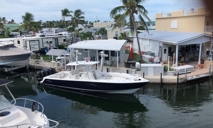 Comfortable mobile home, located on the canal with 53 ft of dock space, with 20, 000 lbs lift, so bring your boat, full kitchen, three (3), 32 inch Flat screens with Direct TV , golf cart, tennis, recreation center with non stop activities for you to enjoy, Marina with fuel, grocery store, gated community with security guard.