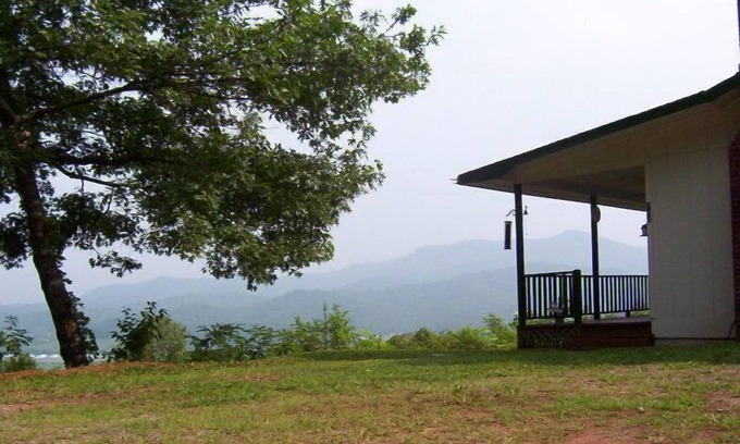 This is a beautiful two bedroom/two bath home (sleeps 6 with sleeper sofa) near Franklin N.C. The cabin offers absolutely awesome panoramic views overlooking the Iotla Valley and the distant Blue Ridge Mountains. The cabin has a covered deck with rockers, porch swing, and ceiling fans so you can totally relax while enjoying the view.