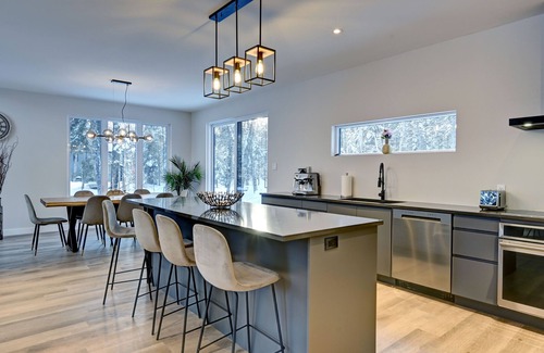 Situated just under a kilometer from the base of Mont Tremblant's Versant Nord (North Side) ski slopes, this brand-new 4-bedroom, 3-bathroom luxury retreat is the ultimate Mont-Tremblant escape. Accommodating up to eight guests, the spacious home features a cozy fireplace for après-ski relaxation and a mix of modern elegance and mountain charm. With the vibrant Mont-Tremblant Resort village just a 15-minute drive away, guests enjoy easy access to renowned skiing, dining, and year-round entertainment. Whether you’re carving down the slopes of Versant Sud, exploring scenic trails, or simply taking in the views, this elegant retreat provides the perfect base for an unforgettable mountain getaway.