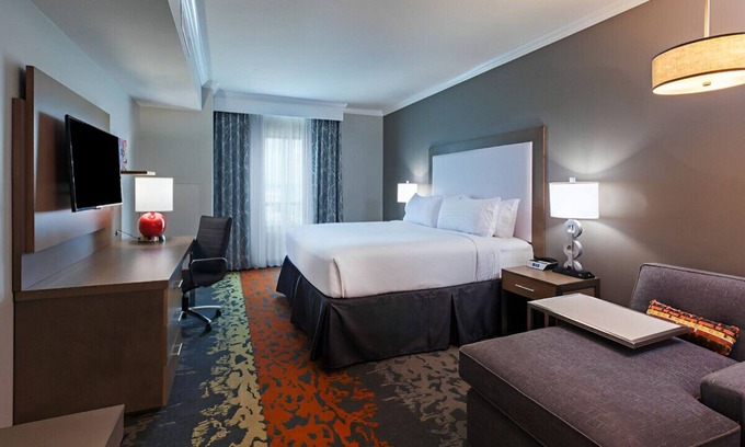 Welcome to the front desk. We’re excited to help you start your trip and make sure it’s the vacation you want. You can also relax by our outdoor pool and Jacuzzi or work out in our large exercise facility. When you arrive and need a great meal, our top-rated full-service restaurant has just what you need after a long flight. Our room is designed for comfort and simplicity, but with a modern style sure to impress. Miscellaneous fees may be subject to additional costs after booking.