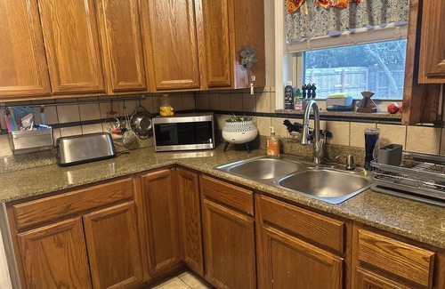 TVs in every room, many games for the family , trampoline and jungle gym in backyard ,a washing machine, and AC. The 2 bathrooms are equipped with a bidet and a shower. Fall in love with Ardmore and enjoy the magic it has to offer. Visit the new casino resort, a dip in Lake Murray or just shop our local vendors in downtown.