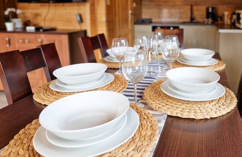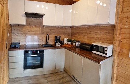 Behind the cottage there is a gazebo that protects against the sun and allows you to eat meals prepared on a brick barbecue standing nearby. There is also a large wooden playground, which will surely please the youngest guests of the "Eagle House".