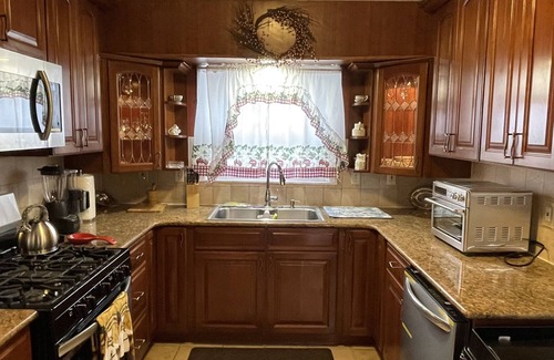 Former NY Governor David Paterson lived in this cozy Colonial for 20 years. Fully-renovated, your home comes with Prime Video, Wi-Fi, a romantic fireplace, wood floors, dining room, homey kitchen, granite countertops, new appliances, dishwasher, washer, dryer, furnished basement, patio, and 4-car driveway. A block from a hospital, 12 minutes drive to Jones Beach, 15 to JFK Airport, 40 to Manhattan, 90 to the Hamptons. Explore New York City from the suburbs; enjoy the best of Long Island.