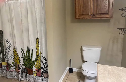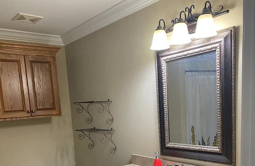 A nice getaway nice kitchen a screen in porch with a table and chairs to watch the sun rise over the river has a boat ramp on property and a dock to put ur boat on and fish off of its down a dirt road and in the country it has a bonus room downstairs upon request for extra charge