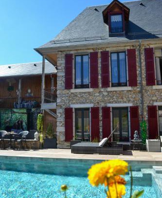 A Nouste chambres d'hotes et gite ONLY ADULTS is a recently renovated guest house in Campan where guests can make the most of its seasonal outdoor swimming pool and garden. The property is around 17 miles from Lourdes Train Station, 19 miles from Basilica of Our Lady of the Rosary, and 11 miles from Pic du Midi Cable Car. Guests can use the hot tub and spa facilities, or enjoy mountain views. At the guest house, some units have a private entrance, dining area, fireplace, and oven. All rooms come with a kettle, a private bathroom, and free Wifi, while selected rooms are fitted with a terrace and some have pool views. At the guest house, all units come with bed linen and towels. Col d'Aspin is 11 miles from the guest house, while Pic du Midi is 15 miles away. Tarbes Lourdes Pyrénées Airport is 17 miles from the property.