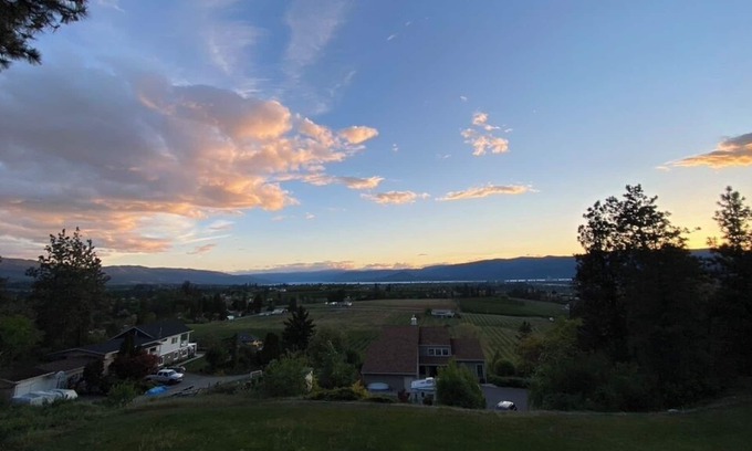 Inside the home you’ll enjoy a large kitchen with all of the necessary dinnerware and cooking utensils to host and have fabulous meals. A large, well-lit living room is perfect for game nights or watching a movie. The smart TV and fast wifi allow you to stream seamlessly all night long. Incredible lake and orchard views, bound to be the perfect backdrop for group photos.