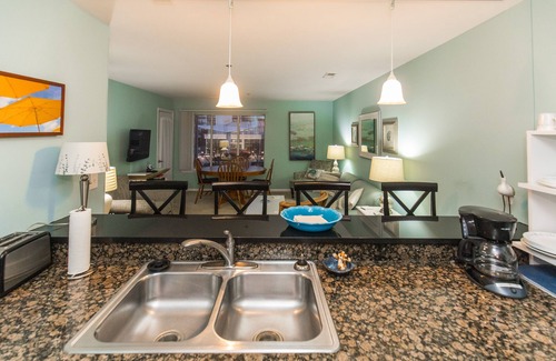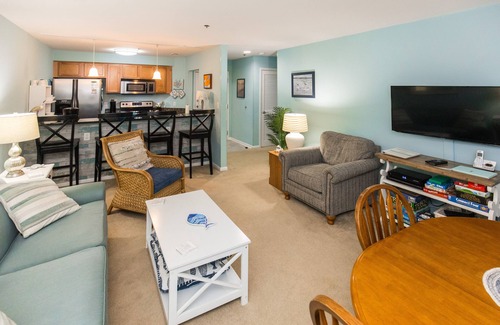 This is an excellent property for 2 couples or a small family who like to be close to the action, want a comfy condo, and will enjoy a pool! One and a half blocks to the beach and the boardwalk in the heart of the resort area, with multiple attractions, restaurants, shopping, and a grocery store nearby. The waterpark is just south of the resort area. Have fun in the sun and then kick back and relax in a lovely 2 bedroom, 2 bath apartment with all the amenities of home. You're all set for a memorable family beach vacation. Sleeps 6, with one assigned parking space and one guest parking pass.