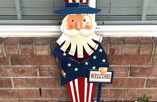 Ready to get-away from the grind? The Americana theme reflects a place that honors God, honors America and honors families. Are you planning for a family reunions or small group gatherings of friends? This home has lots of space and is a welcoming and cozy and is a great space for gatherings. It has a fully stocked kitchen, you just bring the food! The outdoor space provides a yard that is great for outdoor family games and entertainment. There’s a swing on the porch and even a gas BBQ for your outdoor cooking needs!