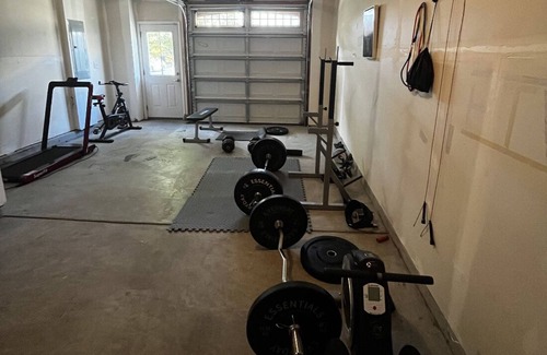 Use only the main front door to access the house. Feel free to enjoy the balcony views but please close the door behind you. This private bedroom and bathroom is all yours during your stay. Garage gym is available for guest use. Please wipe off equipments and place them back after use.