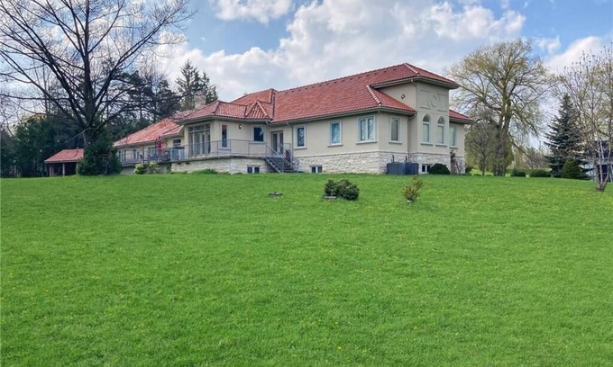 Escape to your personal resort in Terra Cotta! This stunning 11-acre retreat features a spring-fed private lake, a sparkling pool, and a state-of-the-art outdoor grill. The Spanish-style raised ranch home with terra cotta roof tiles offers an inviting open-concept design, warm stone fireplace, and elegant walnut hardwood floors. Multiple walkouts lead to a spacious deck with serene lake views. Just 10 minutes from downtown Georgetown and 30 minutes to YYZ, it's your perfect luxury getaway.