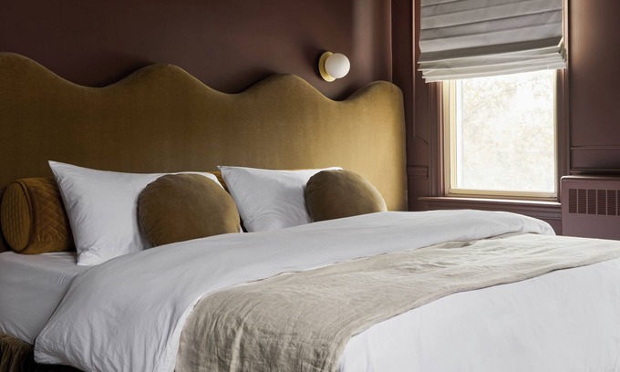 This flat features a luxe king sized bed with a signature Hotel Julie wall-to-wall wiggle headboard.