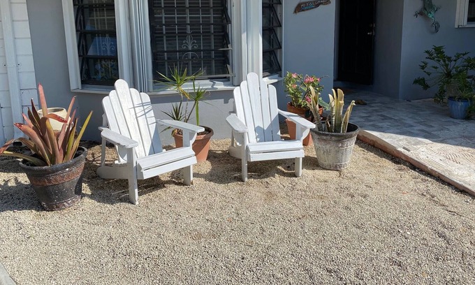 This wonderful little cottage, is located in a private cul de sac with the homeowners next door for your assistance. Ms. Kay's has one master bedroom and a small guest room as well. Access to a pool and a private garden as well as an enclosed patio for additional dining or relaxing. The cottage is located in the Lucaya area, only 5 minutes from famous Taino Beach, 10 minutes from Port Lucaya by car, you can even walk there too.