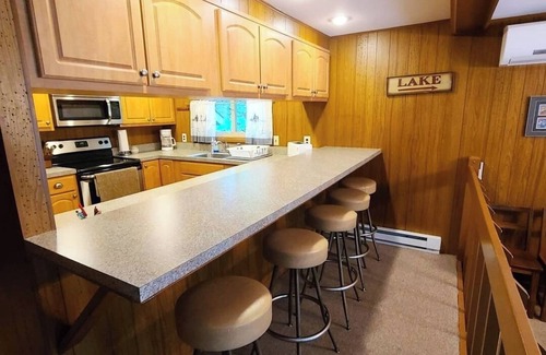 The fully-equipped kitchen, complete with pots, pans, and utensils, makes meal preparation a breeze. Cook burgers and hot dogs on the provided gas grill while enjoying lake views from the deck. Stay connected with Wi-Fi throughout the home and unwind in front of the 44" flat screen TV after a day of adventure. There is air-conditioning on each floor, as well as ceiling fans in every bedroom.