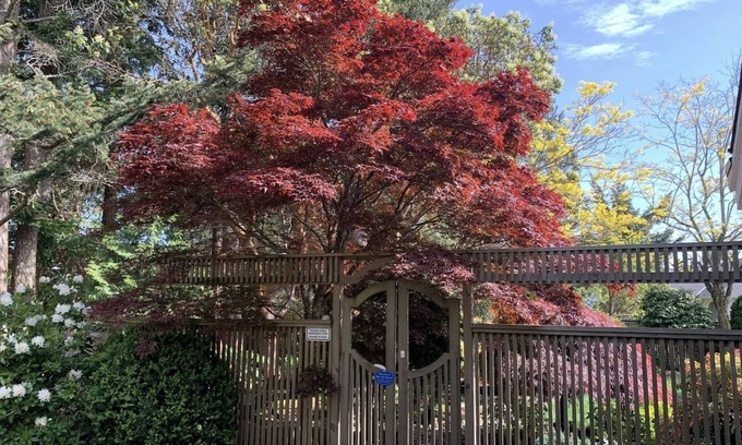 The front yard has a secluded glade surrounded by Arbutus and pine trees. Please note that Spring cleanup of the garden occurs in April / May of each year.