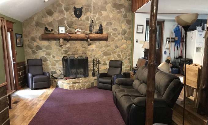 Welcome to eagle and bear country! This charming 3-bedroom home is nestled in private woods along the Allegheny river. The 3 bedrooms, 2 bathrooms can accommodate up to 6 guests. There is a king sized bed in the main bedroom, a full sized bed in the middle and last bedrooms. A roomy open floor plan on the main floor gives ample space for entertaining. Central air conditioning and a wood-burning fireplace help to make any season cozy and comfortable.