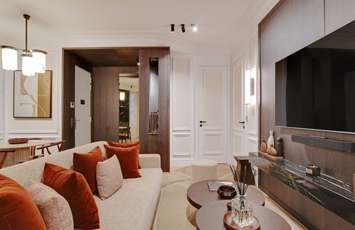 Tastefully and delicately decorated, each space reflects contemporary Parisian elegance and refinement. Every detail has been meticulously thought through, from the noble colours to the timeless parquet flooring and carefully selected design elements, to create a warm, luxurious atmosphere of the highest standard.