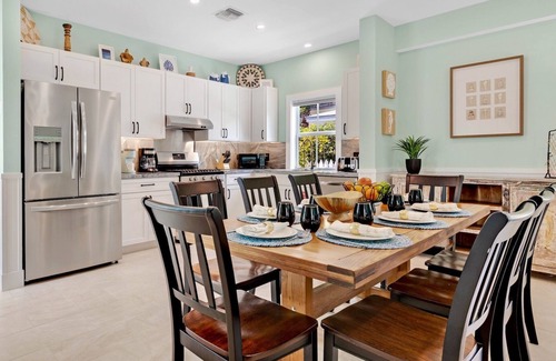 There are a total of three living areas, each with plenty of space for everyone to unwind after a day on Duval Street or out on the water. Each living room features a large flat screen TV that can be enjoyed from the comfortable furniture options, including plush sleeper sofas in each house. The three kitchens are fully equipped with every appliance and tool the chef in your group will need to prepare meals from home. Each home also offers indoor and outdoor dining.