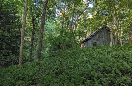 Soak in the Hot Tub on the screened in porch in a private setting that looks out over mature hardwood forest laden with ferns. Custom design with native hardwoods, concrete and stone. Handicap access.