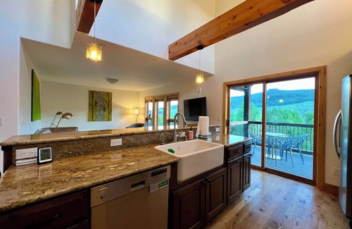 • Fully equipped kitchen/dining area with vaulted ceilings and brand-new Bosch dishwasher
