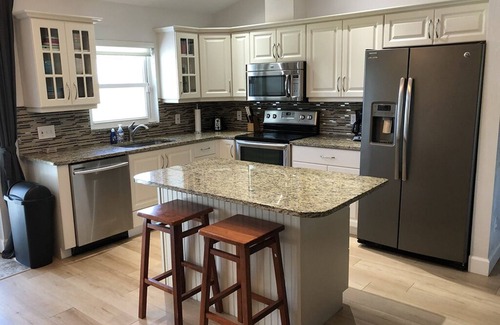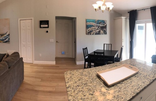 Welcome to our little piece of Port Orange Paradise. This three-bedroom, two-bathroom home is nestled in a quiet neighborhood, which makes it a nice hideaway within walking distance or a short drive of all that Port Orange / Daytona Beach has to offer. Upon entry, you'll have a bright interior and a cozy atmosphere throughout the well-appointed living area. Relax and make yourself at home by resting on the plush furniture, streaming your favorite movies on the large TV, or serving breakfast on the patio. Prepare meals and snacks in the modern kitchen, featuring stainless steel appliances and a formal expandable dining table. Comfortable beds in spacious bedrooms ensure that everyone will receive a restful night's sleep from the day's adventures. Close to Daytona International Airport (15 min.) and Orlando Airports (75 min) for close-by travel. Our place is nicely situated to access the Beach (15 min), Daytona Speedway (15 min), Orlando Parks (75-90 min), and Cape Canaveral Space Center (1 hour). We have several local restaurant options within a 5–10-minute walk and more via short 5-minute car ride. Groceries, Wal-Mart, Target, Publix, are also a short 5-minute drive away. We provide beach towels, some sand toys, and a wagon to make your beach time fun and easier. Plus, to ensure your entertainment needs are met, we offer streaming services, and for your convenience, there's free parking for 4 vehicles in the driveway.