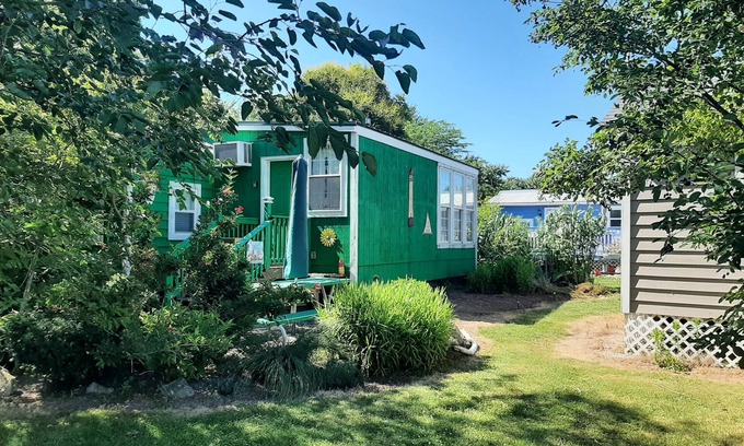 Bedroom info: Master bedroom has 1 queen size bed with built in closets. Bedroom 2 has queen size bunk beds (room for 4). Loft has 2 twin beds with sturdy ladder/steps to go up. There is an extra cot in the loft closet. Front living room: 2 love seat couches, 3 chairs, electric fireplace and TV (YouTube TV available for guests), Kitchen/Dining area has small stove, refrigerator, coffee bar/drink area, small table with 3 chairs, bar top table with 2 stools, glider chair :) Bathroom has small sink, toilet and shower/tub. It is small. There are other areas available to shower on the island for larger groups. Outdoor patio area with 6 chairs, 1 bench seat and hammock & view of the lake.