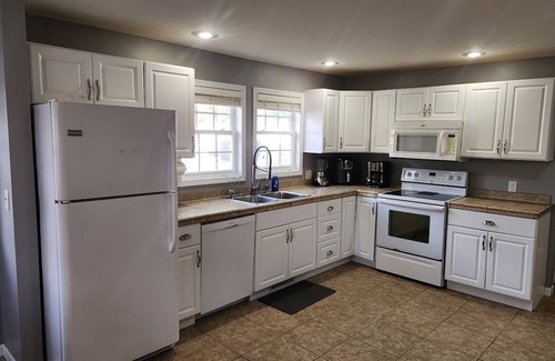 Kitchen-fully equipped, coffee pot, blender, microwave, water filtration, deep double sink, cooking essentials, Indoor/Outdoor dishware, appliances including refrigerator, stove, and dishwasher.