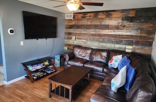 Unwind and recharge with family, food, and friends, located on a desirable corner lot this spacious house offers families the ability to have their own space but remain close enough to create memories in the large common areas. 3 Bedrooms provide great sleeping options while a large open fully stocked kitchen and connected family room is a great space for get-togethers of all types. With mesh-enabled WIFI the 65-inch Roku TV to watch a game or cuddle up at night with a movie makes the family room a in-demand rendezvous spot. The kitchen has a large table perfect for a big meal or card game. The home also has a washer and dryer to help remove the dirt but not the memories it made. 🙂
