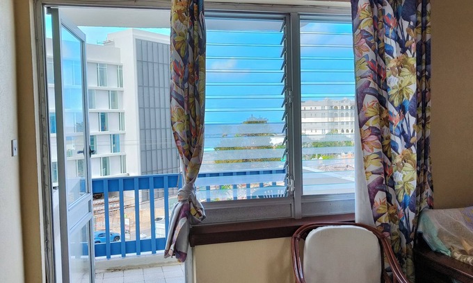 Located on the vibrant south coast of Barbados my fourth floor apartment has a private entrance, protected by two outer access doors. One can relax on the 2 balconies with sea views where shade is at the front in the mornings and at the back in the afternoons. The bedrooms are air-conditioned but often this isn't needed as the air flows through from the many windows and two balcony doors. There are 2 bathrooms, (1 en suite), with a walk-in shower and a hairdryer. There is a large open plan living room/dining area with flat screen TV plus cable channels. The well-equipped kitchen features a Westinghouse cooker, a refrigerator, microwave and kitchenware. A separate laundry room has a washing machine and a drier.