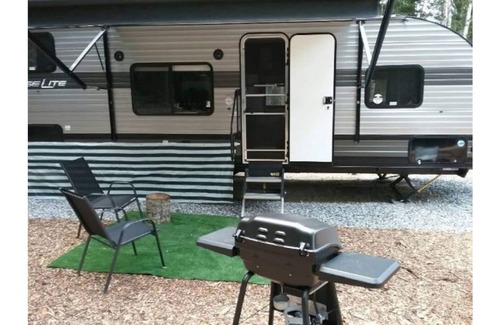 There are 2 Woodland camps on the property to pick from- for your enjoyable stay . This Paradise Camp in your 29' Camper- and we bet you will agree a stay in Paradise is great --Or if in use Type: Woodlands Camps at West Rockport in the Search and find Mountain Camp a 21 ft Keystone- with a pop out. (Floor space is similar). We provide linens, towels, dishes and pots etc. (Bring food & sports gear-and let the fun begin! And... we help to make it special)! Spectacular 4 town area has much to do. (Do not bring wood, Maine LAW so we provide it.)-We start you off with some ideas. There are good & great restaurants close by. The beauty is grand & full around your outdoor experience & also with a few games around the fire-pit. Enjoy a few days, or week(s) - - with much to see: Lighthouses, or take a Breakwater walk, find a Mountain or two nearby to hike and lobster all around to enjoy and/or take a nice ride along the Coast(and eat at one the Lincolnville pound). Do not miss the Mt. Battie "wow" experience or Blueberry Hill a mile or two is one of many spots that has a trail and a view that is spectacular. Or not far to Belfast for the Harbor work. Also around our local area are lakes you can rent a kayak or also play golf. Your stay is in nature & nice when you get home to also have a good bed. While near your fire pit you might stay to play Bocce Ball & Corn Hole....