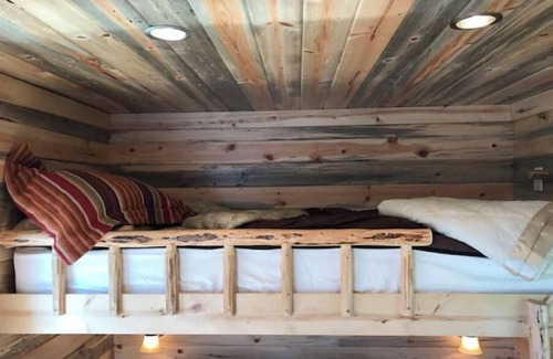 Our place at the lake is amazing and relaxing!! This cabin is stocked with all the comforts of home. Along with extra activities...fishing, hunting, hiking, relaxing, ice cream, and much more.. This place is good for a couple or solo adventurers. This adorably decorated cozy cabin has a full-size bed and a twin size bunk. This cabin is about 200 feet from the lake, a short walk to the dock for water fun and beautiful sunsets!!