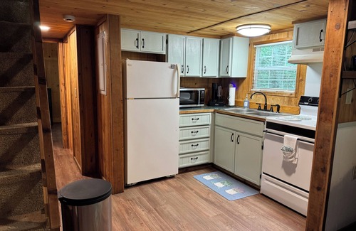 A Tiny Slice of Heaven in Boone is a charming retreat featuring a cozy bedroom with a queen bed, a loft with both a queen and twin bed, and a welcoming living room. The home includes a fully equipped kitchen, air conditioning, and a warm fireplace for relaxing evenings. Step out onto the brand-new deck to unwind with a good book or a glass of wine, surrounded by peaceful mountain vibes.